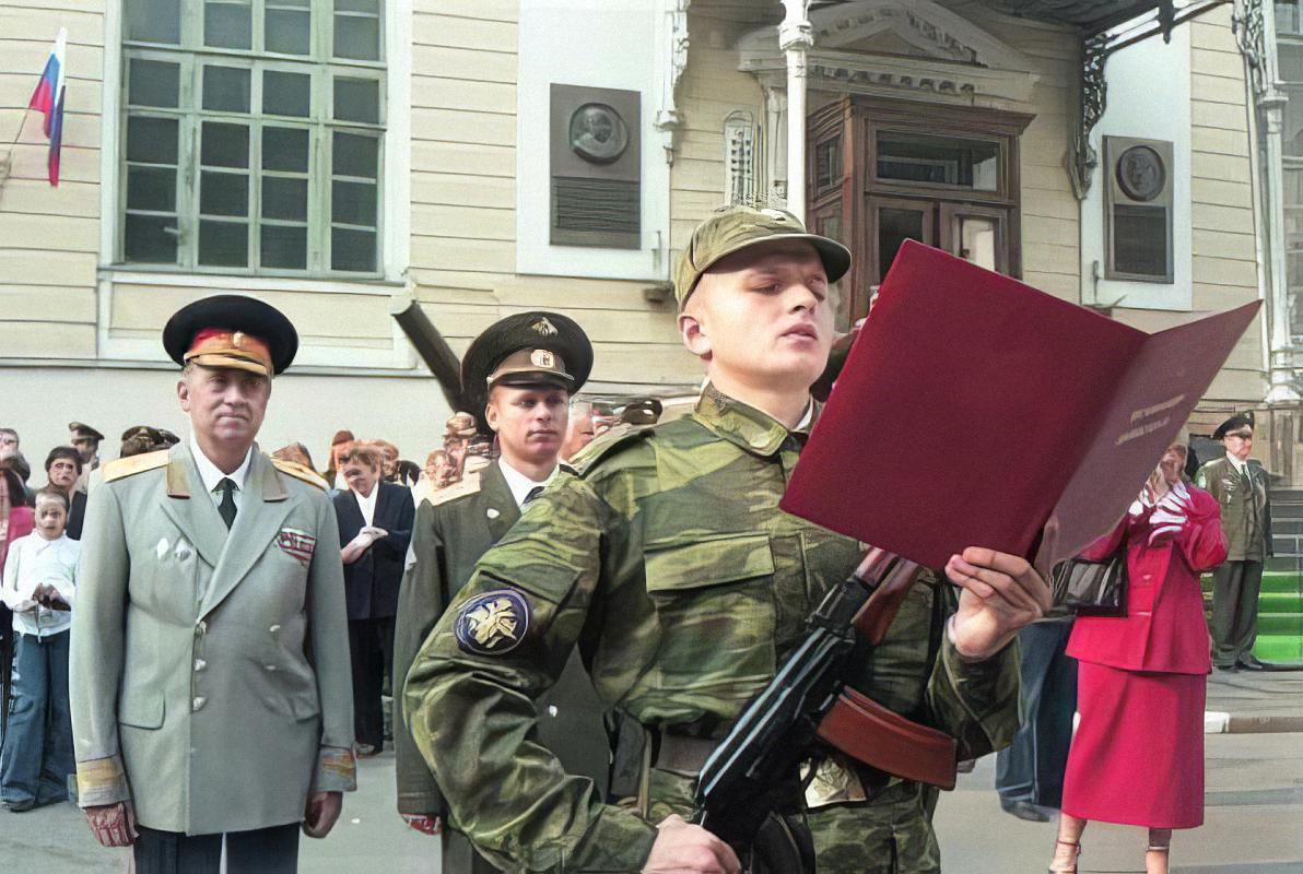 Владимир Лукич принимает Военную присягу у курсанта первого курса (левое фото) и вручает диплом об окончании Военной академии РВСН имени Петра Великого новому лейтенанту (правое фото)
