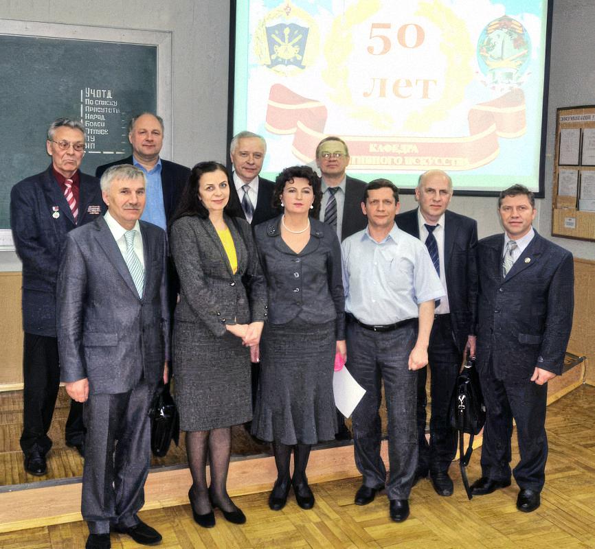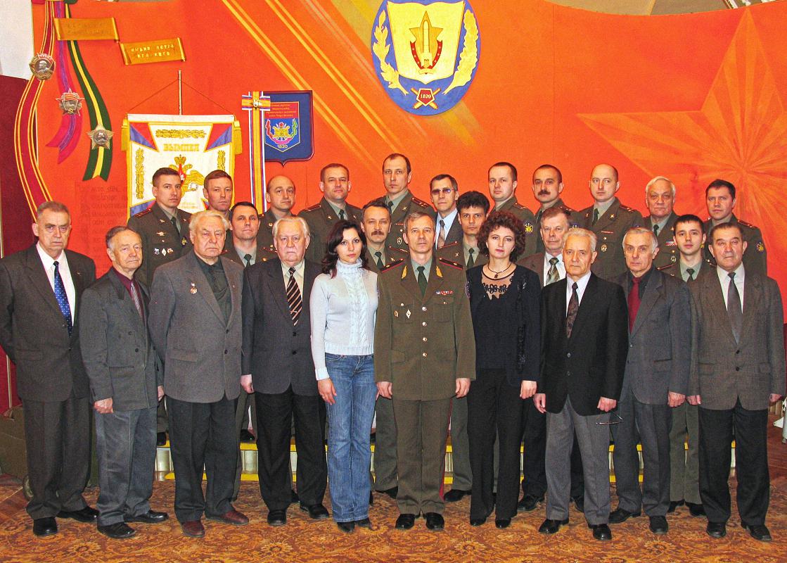 Ветераны ВНГ-1 состава 1990-х годов на юбилее кафедры оперативного искусства. Слева направо, 1-й ряд: Атаев Д.М. (нач. 3-го отделения), Нефедова Л.Н., Москаленко Г.Н., Хохлов И.Д. 2-й ряд: Харитонов В.Н., Маркитан Ж.Р., Москаленко В.В., Криворучко В.А., Самойленко В.М. (начальник ВНГ), Павлушенко М.И. (нач. 1-го отделения), 2011 г.
