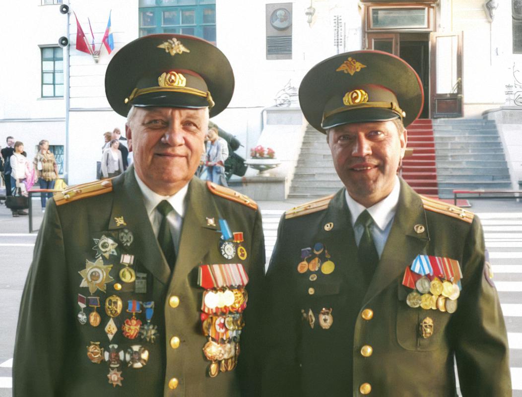 На левом фото участник Великой Отечественной войны, выпускник ВА им. М.В. Фрунзе, начальник штаба первой дивизии с БРК «Пионер», ведущий лектор академии, внедривший в учебный процесс вопросы фронтовой и армейской общевойсковых операций, внесенный в исторический формуляр академии (1975) Наугольнов Л.А. (слева) и Баранов В.Л. (справа). На правом фото два председателя ПМК № 2 кафедры № 01 Наугольнов Л.А. (слева, вторая половина 1970-х годов) и Павлушенко М.И. (справа, вторая половина 2000-х годов)