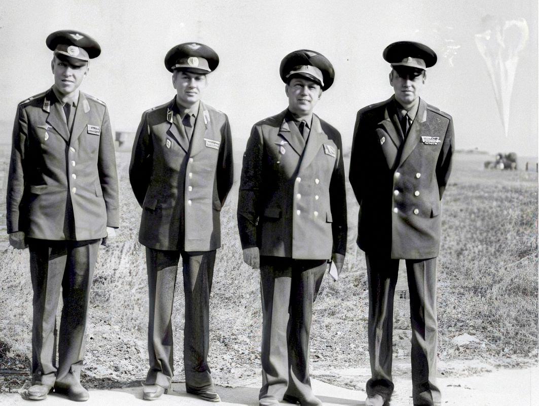 На подъемном поле Вольского воздухоплавательного научно-исследовательского центра ВВС России. На левом фото слева направо: начальник Воздухоплавательной службы ВВС полковник Мошаров В.В., начальник ВНИЦ полковник Макарцев О.В., заместитель начальника Главного штаба ВВС генерал-лейтенант Руденя А.Л., начальник кафедры № 01 ВА имени Ф.Э. Дзержинского генерал-майор Баранов В.Л. На заднем плане – автоматический аэростат-носитель средств поражения. На правом фото слева направо: начальник ВНИЦ полковник Макарцев О.В., начальник кафедры № 01 ВА им. Ф.Э. Дзержинского генерал-майор Баранов В.Л., заместитель начальника Главного штаба ВВС генерал-лейтенант Руденя А.Л., начальник Воздухоплавательной службы ВВС полковник Мошаров В.В., неизвестный. На заднем плане – привязной аэростат-ретранслятор