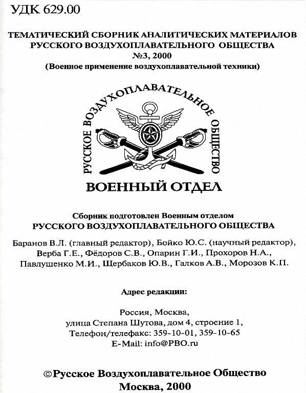 Очередным изданием Русского воздухоплавательного общества стал выпуск «Тематического сборника аналитических материалов по военному применению воздухоплавательной техники». В этом сборнике Владимир Лукич на общественных началах исполнял обязанности главного редактора. Для его наполнения материалами В.Л. Баранов перевел с иностранных языков сотни страниц текста. Так, например, он был первым в нашей стране, кто лично перевел и опубликовал данные МО США о перспективной комплексной системе обнаружения низколетящих крылатых ракет на базе привязных аэростатов (JLENS – Joint Land Attack Cruise Missile Defense Elevated Netted Sensor). Особо интересные факты Владимир Лукич подчеркивал и ставил свой фирменный знак: треугольник, а в нем восклицательный знак. Когда ему попадался интересный материал по военному воздухоплаванию, он им делился со мной.