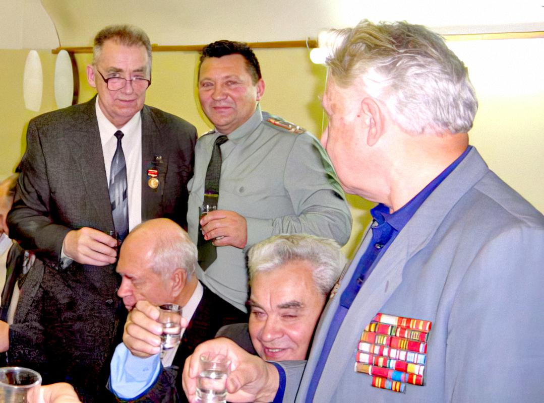 70-летие Владимира Лукича. Слева направо, стоят: Баранов В.Л., Белогуров В.И., Нехорошев Н.Г.; сидят: Маркитан Р.В., Охотников Г.Н.. 2006 г.