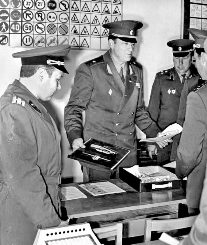 Баранов В.Л. в классе автомобильной подготовки 315 рп. Слева командир полка подполковник Герасимов В.П., справа комдив 37 рд генерал-майор Баранов В.Л.