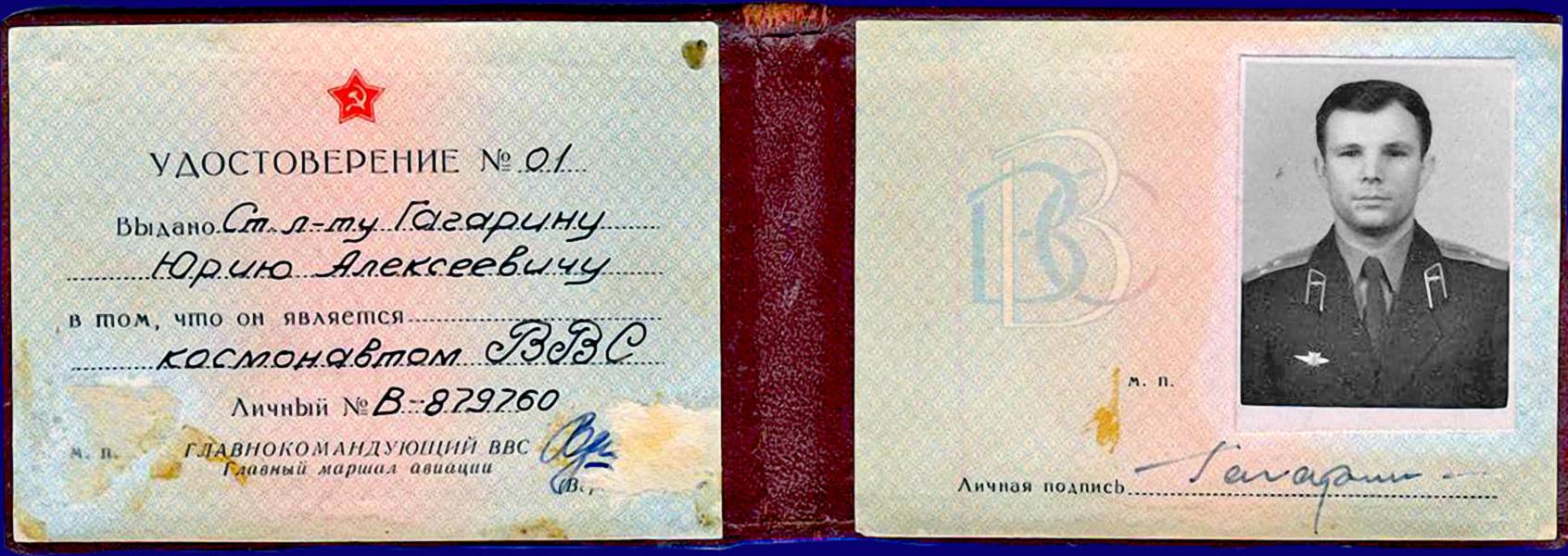 Удостоверение Космонавта ВВС Ю.А.Гагарина